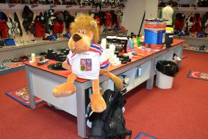 V šatně den před zahájením MS vládnul zatím bezejmenný plyšový lvíček