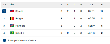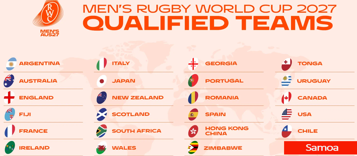O poslední postupovém místě se rozhodlo na turnaji v Dubai, kde o účast na MS usilovaly reprezentacee Namibie, Belgie, Samoy a Brazilie. Tuto kvalifikaci vyhrála Samoa, která byla kromě prvního šampionátu v roce 1987, jehož se zúčastnilo jen 16 týmů, na všech ostatních MS. Není bez zajímavosti, že v rozhodujícím utkání Samoa jen remizovala s rovněž do té doby neporažené Belgie, jež měla ovšem v tabulce o bod méně než Samoa.