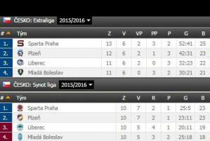 Kuriozita... Fotbalové i hokejové celky se seřadily na prvních čtyřech místech v tabulkách