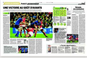 Prvními čtvrtfinalisty mistrovství světa v ragby se stali Francouzi, kteří porazila Kanadu 41:18 a vyhráli i svůj třetí zápas. Navíc si připsali důležitý bonusový bod za více než čtyři položené...