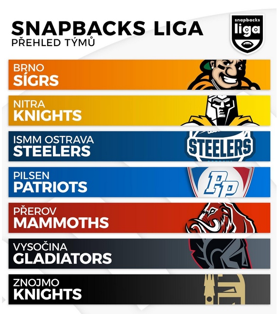Přestože Sígrs přijali výzvu v podobě postupu z 2.Ligy, tak i v letošní sezoně je 7 účastníků nejvyšší Snapbacks ligy. Opačným směrem se totiž na vlastní žádost poroučeli Monarchs, které tak uvidíme ve 2.Lize. Sígrs doplní tradiční šestice týmů Gladiators, Nitra a Znojmo Knights, Mammoths, Patriots a Steelers.