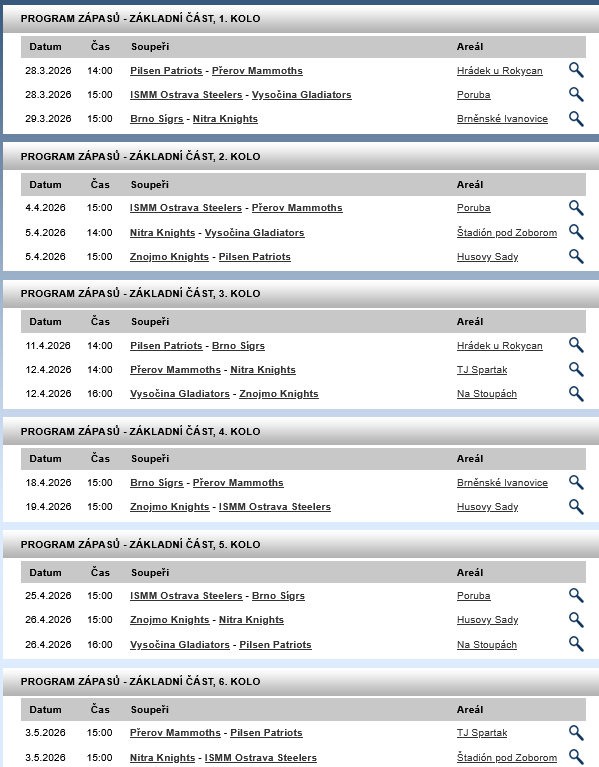 Program zápasů ... základní část 1. až 6. kolo