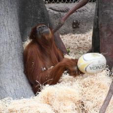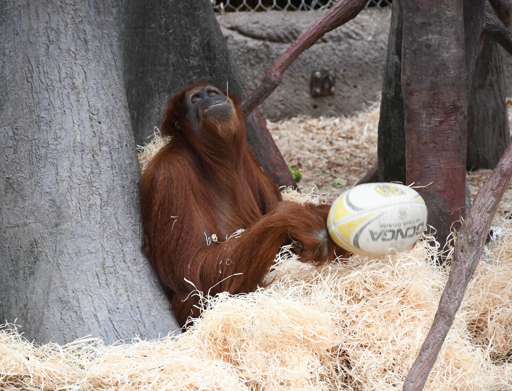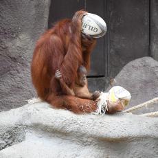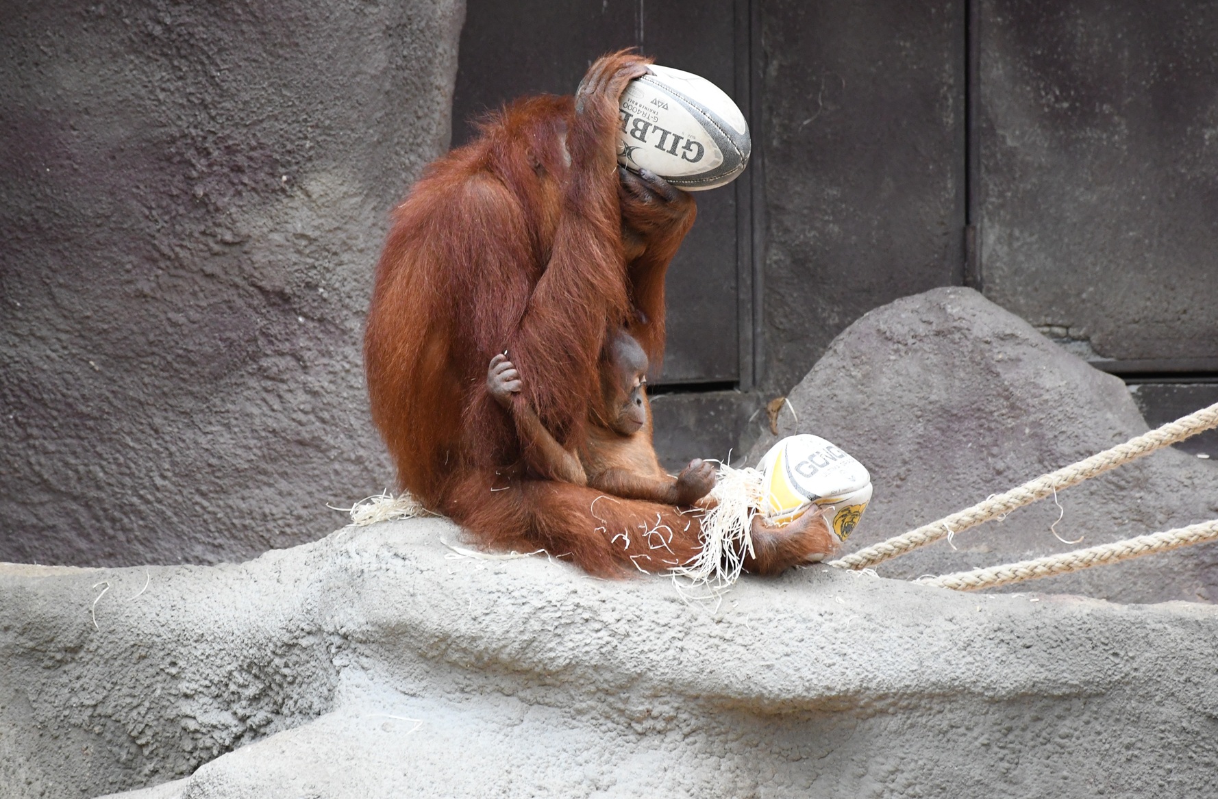 Zvířata dostala ragbyové míče na hraní vůbec poprvé v jejich životě a proč zrovna to byly ragbyového míče, jsme se dozvěděli od ragbistů Pragy Praha, které před časem napsalo vyřazené míče věnovat právě do Zoo Praha.