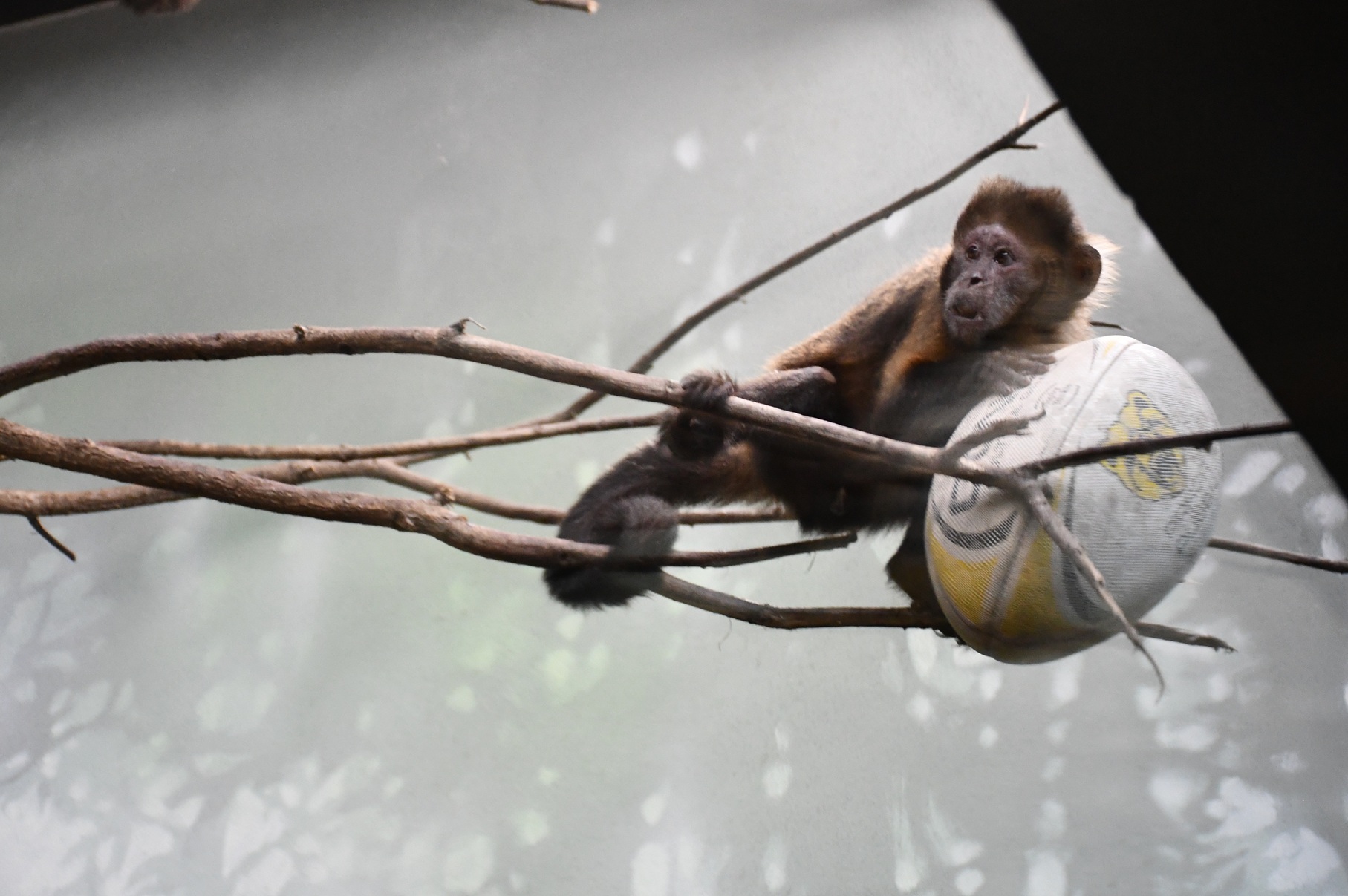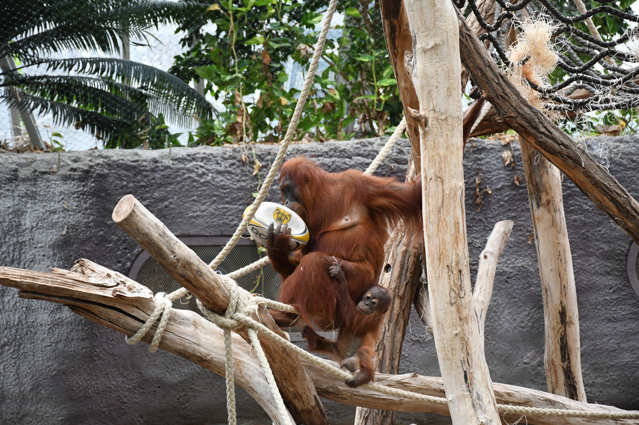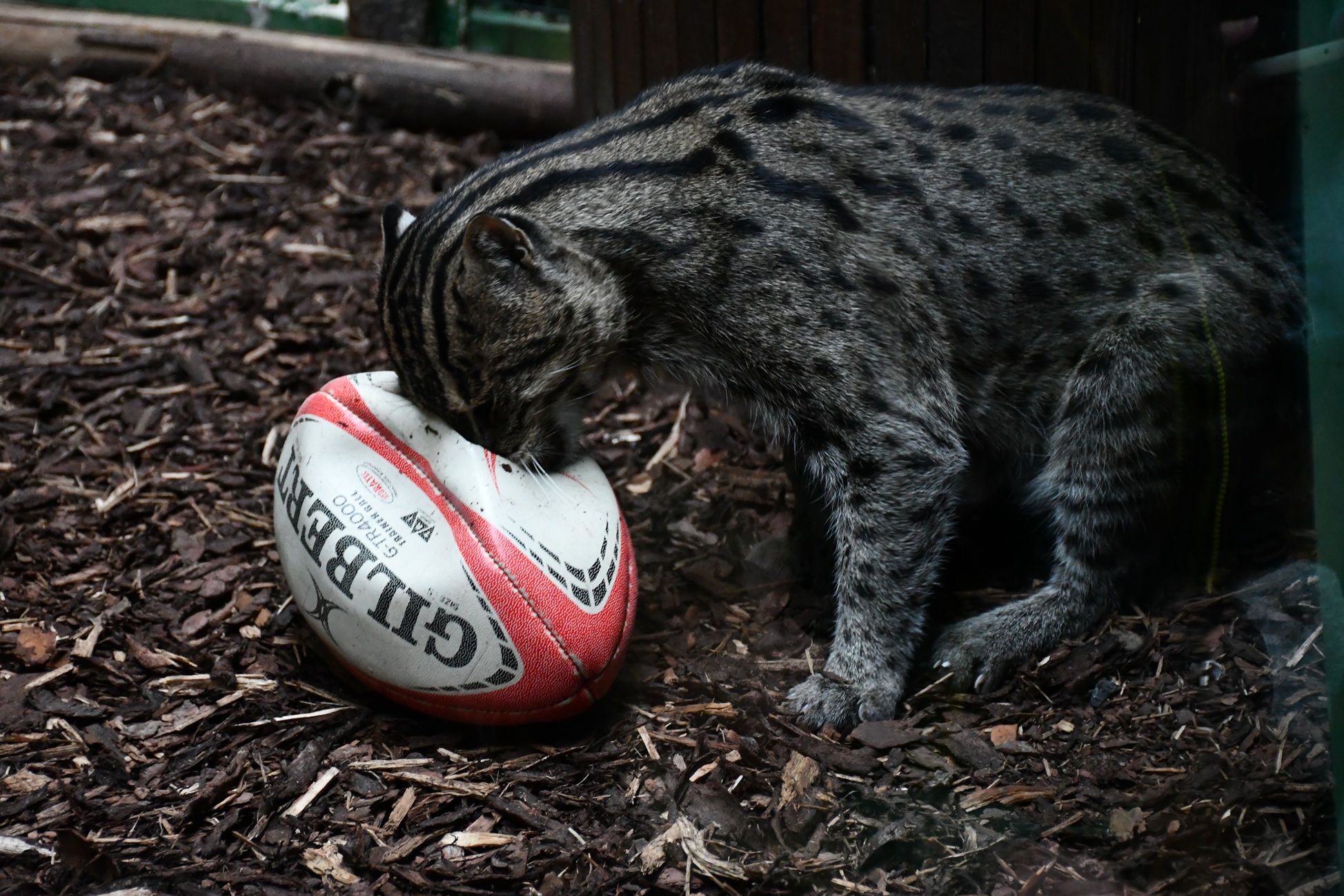 Jedním ze zvířat, které si vyzkoušelo nový prvek v Pavilonu šelem a plazů v podobě ragbyového míče, byla kočka rybářská. Dalším zvířetem, které se zase na jiném místě seznámilo s ragbyovým míčem byla malpa zlatobřichá. Šišatý míč jsme sledovali také na místě, kde se předváděli lachtani v bazénu a v pavilonu nazvaném Indonéská džungle zase huňatí orangutáni sumaterští. Nutno dodat, že speciální enrichment byl plněný různými dobrotami, ovoněný pachy a pro vybrané druhy tak, aby představoval zpestření krmné dávky i herní prvek.