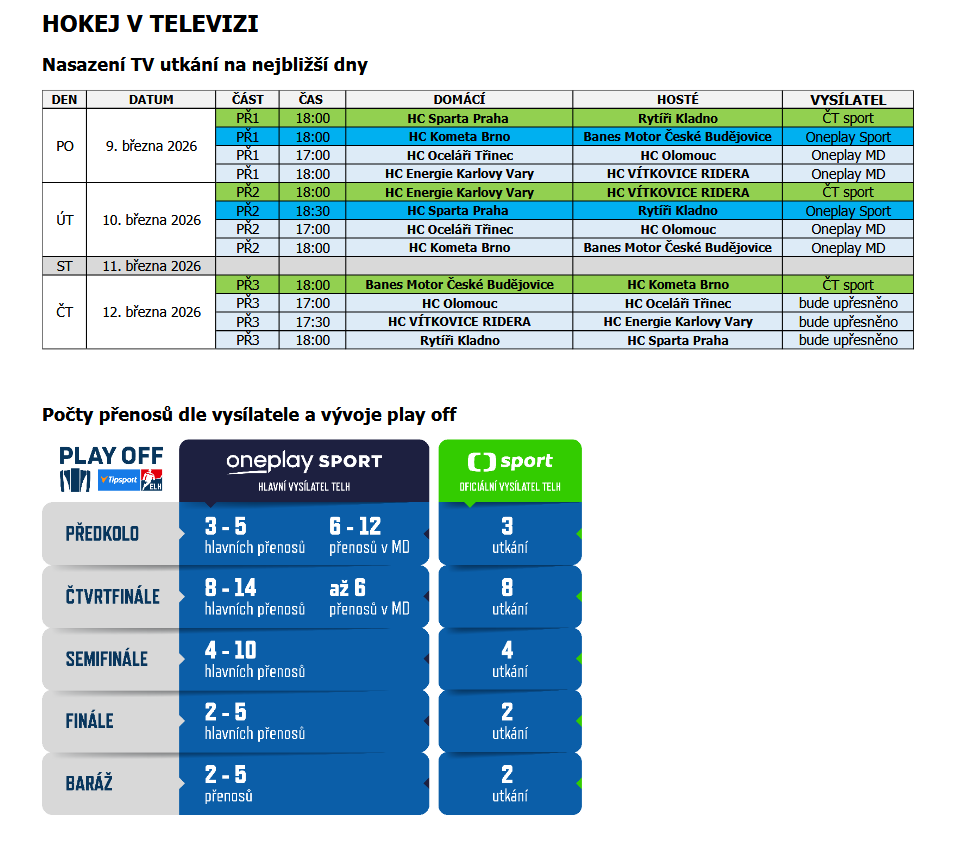 Předkolo play off Tipsport ELH (9. – 15. 3. 2026)