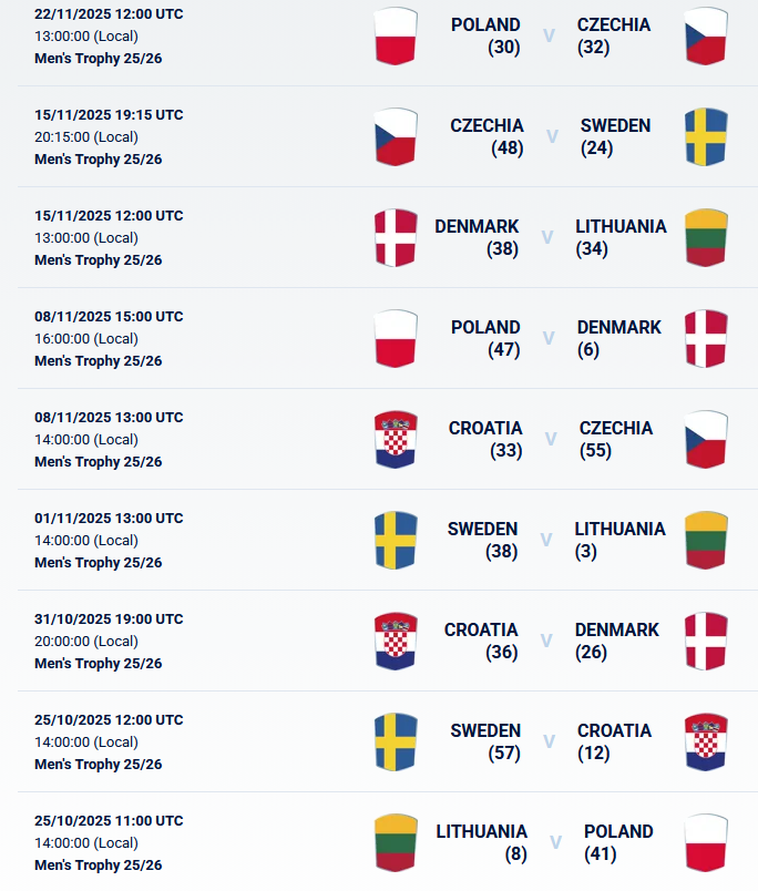Čeští ragbisté poslední den v únoru 2026 odehrají s Litvou poslední domácí utkání dvouleté soutěže Trophy, aby ještě 11. dubna 2026 odehráli poslední zápas s Dánskem na hřišti Dánů.
