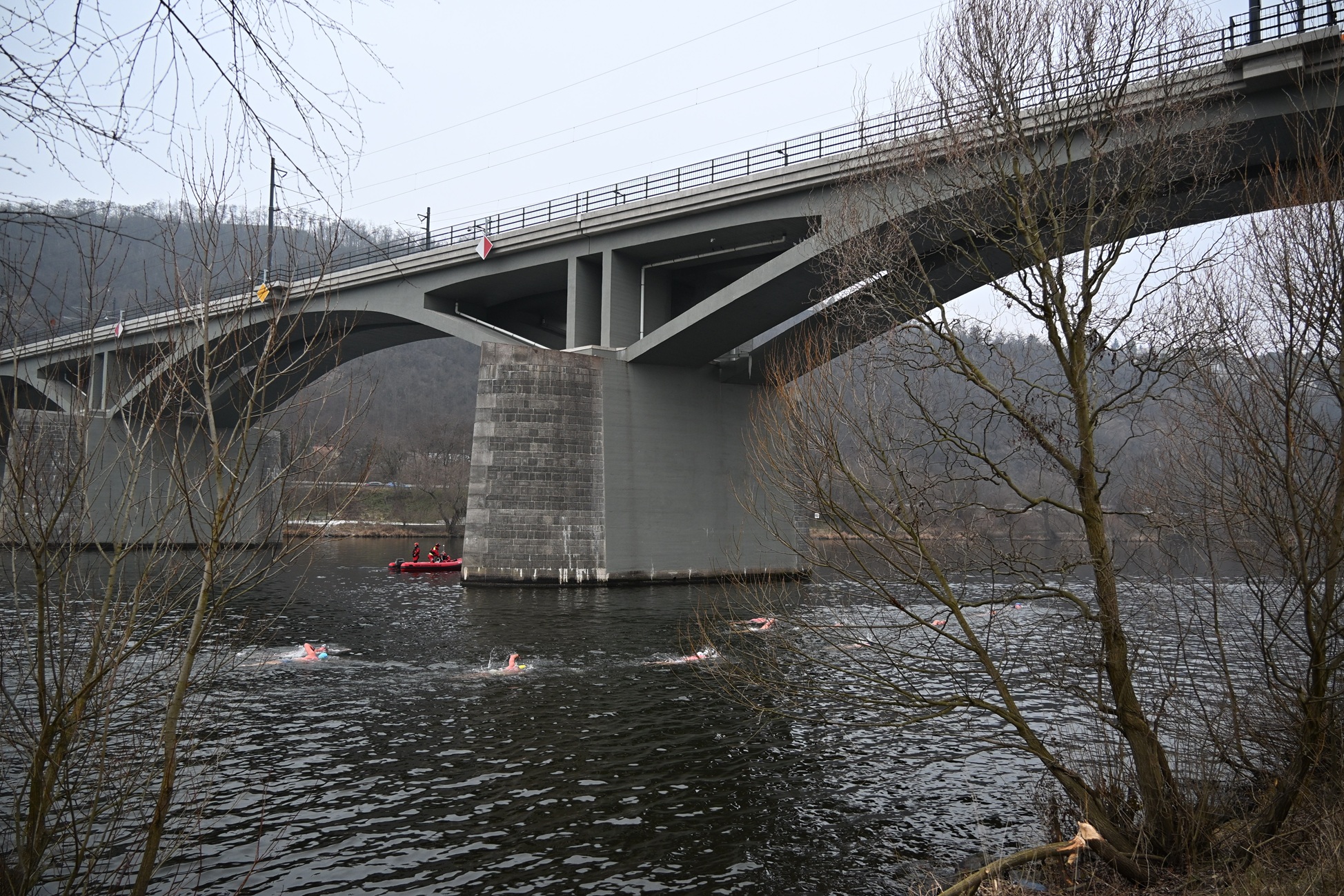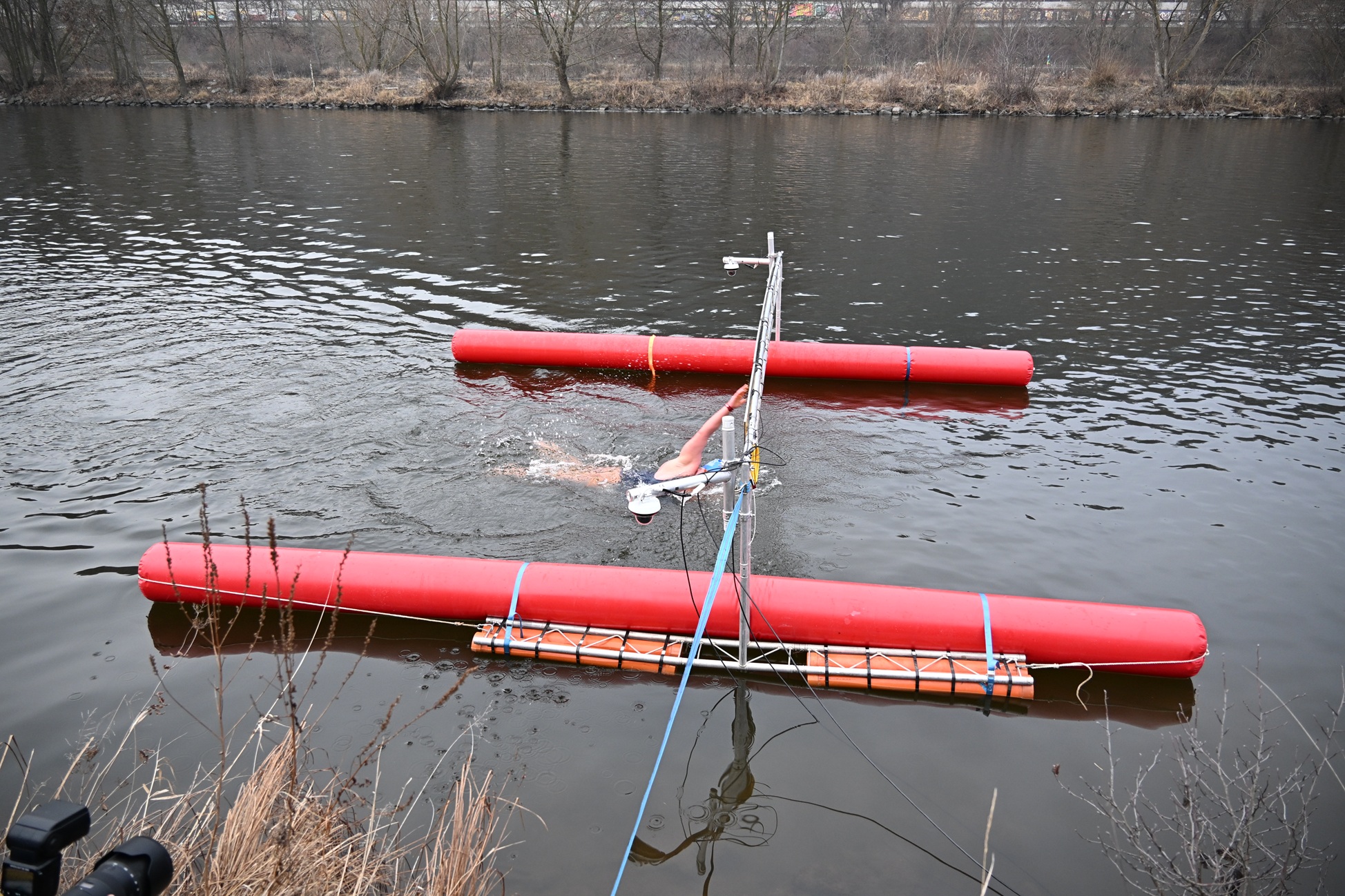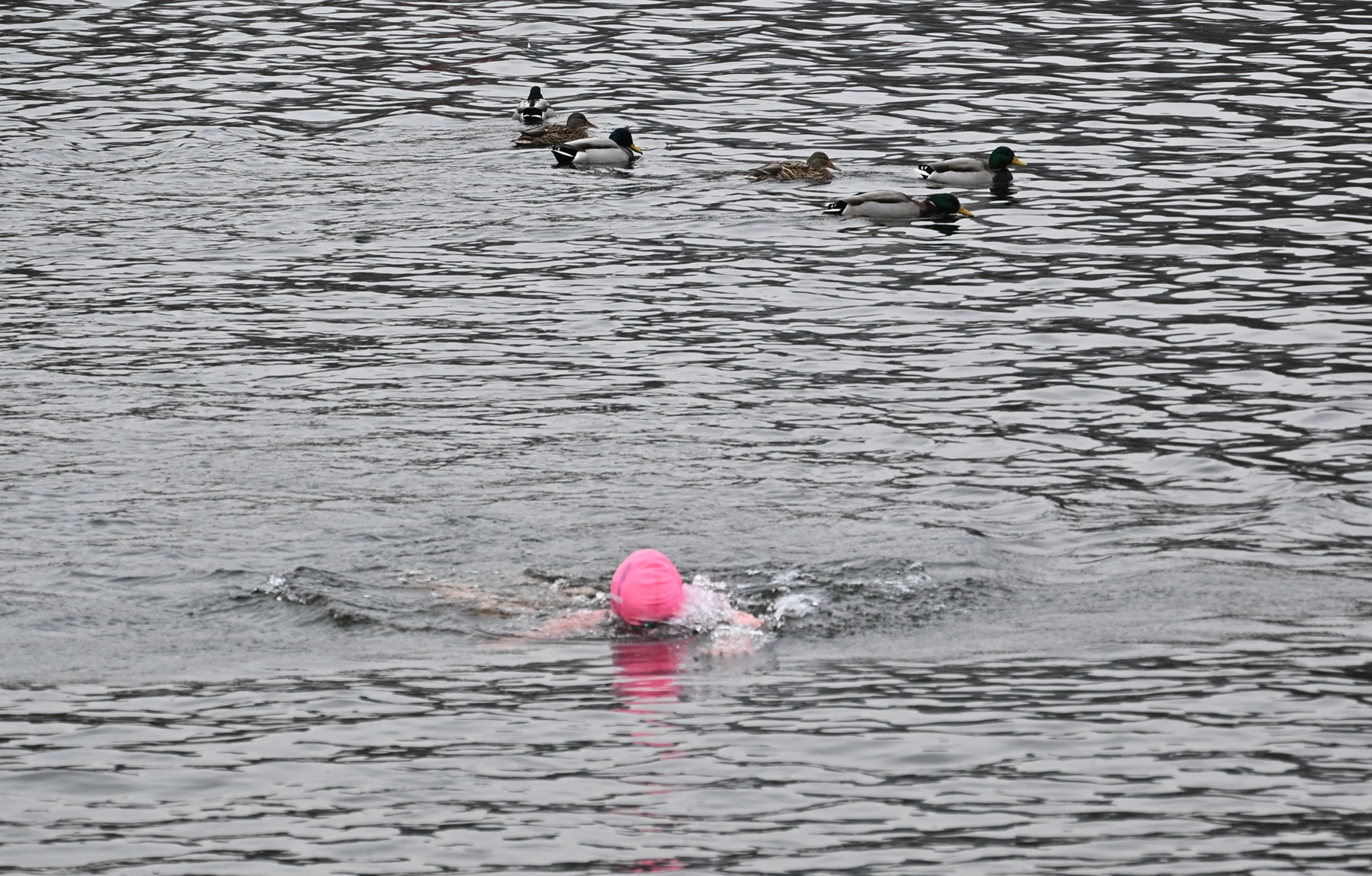Zajímavostí závodu byla skutečnost, že plavce doprovázely kachny.