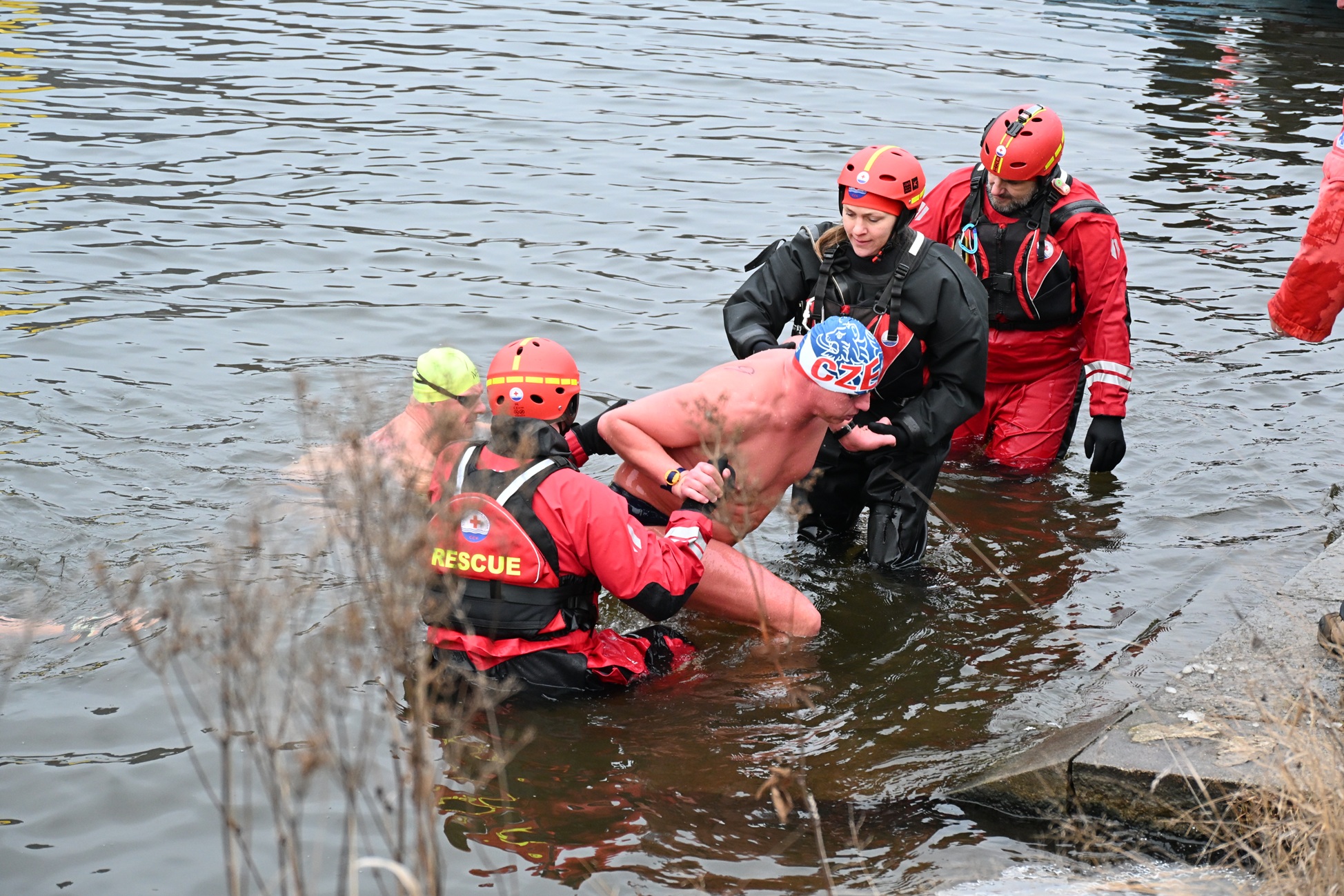 Že uplavat zejména kilometrovou trať v zimě ve Vltavě není vůbec snadné pozorovali diváci a doprovod závodníků v cíli, když se plavci vynořili z řeky a chystali se vystoupit na břeh. Bez pomocí zdravotníků nebo pořadatelů by někteří ten výstup na břeh zdolali jen z obtížemi.