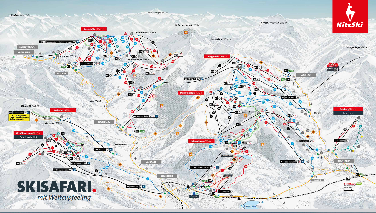 Kitzbühelské Alpy ovšem nemají jen tuto se závodem spjatou sjezdovku. V oblasti je dokonce 233 sjezdovek, jež se rozpínají na ploše 577 ha, z toho 447 ha má technické zasněžování. Sjezdovky jsou v nadmořské výšce 800–2000 metru a lyžařům, k jejich vyvezením na kopce slouží 58 lanovek . Rakušané tvrdí, že lanovky mají moderní design v harmonii s přírodou. Nové lanovky mají dokonce inteligentní vyhřívání sedadel. A to není všechno. V údolích je 10 vleků pro všechny začátečníky ne jenom pro děti zdarma. V lokalitách, o kterých si nyní čtete, je i sáňkařská dráha. Lyžaři mohou navštívit čtyři lyžařské parky. V zimě každý den 43 roleb upravuje 196 km sjezdovek. Návštěvníci mají k dispozici 60 lyžařských chat. Loni investovali správci areálů do nákupu nových sněžných děl 30 milionů er, takže nyní je zde celkem 1260 děl.