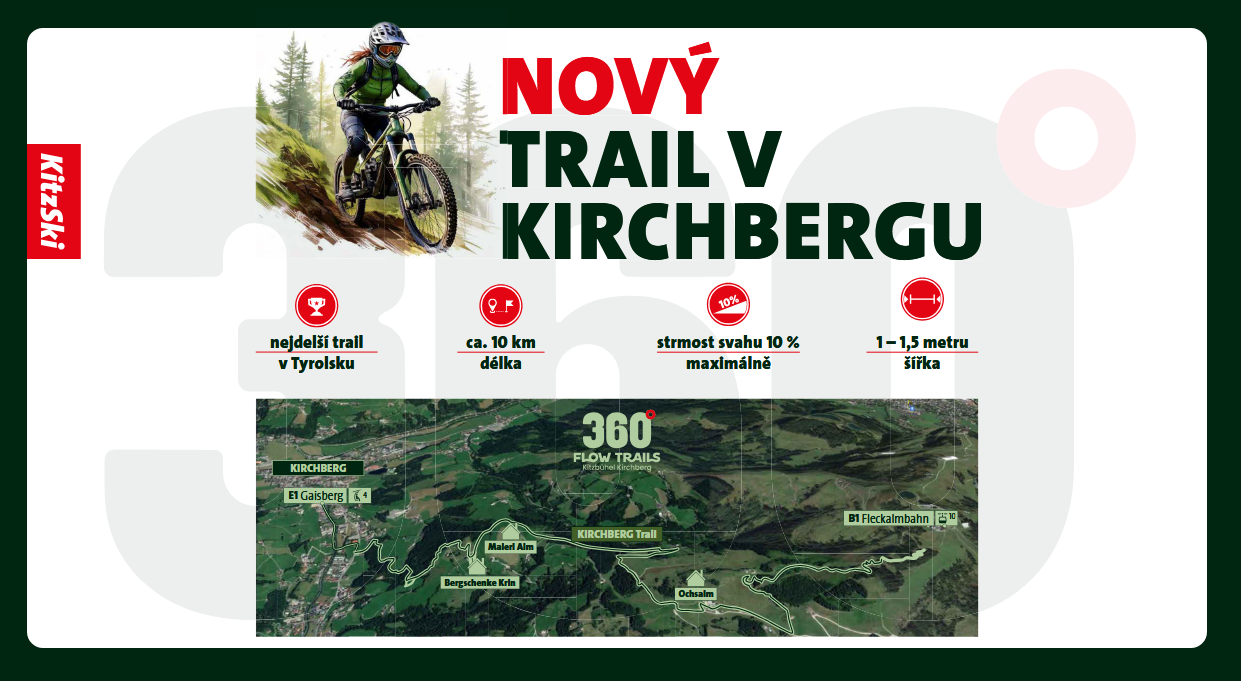 Letos bude uvedený do provozu nový trial Kirchner podél lanovky Fleckalmbahn, který bude nejdelší v Tyrolsku, protože je dlouhý 10 km a má spád 10 %. Bude mít šíři 1-1,5 m, což je tak akorád pro celou rodinu.