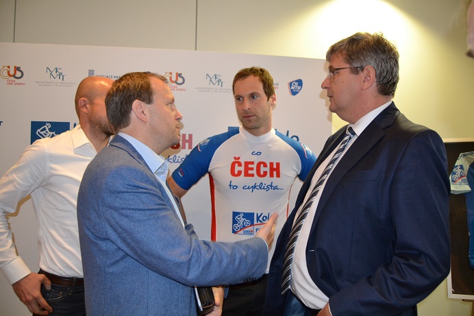 Marcel Chládek, ministr školství, mládeže a tělovýchovy, Petr Čech fotbalový brankář a Miroslav Jansta předseda České unie sportu