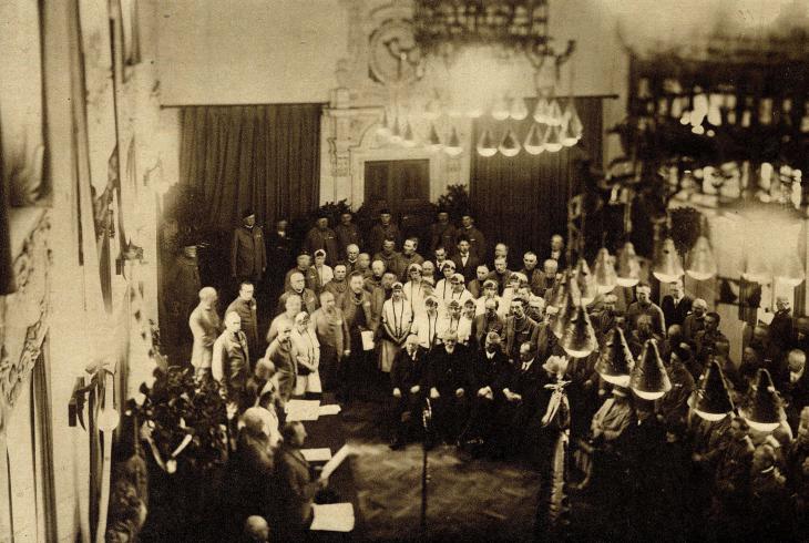Je tomu deset let, kdy se nezapomenutelného jara roku 1918 dne 13. dubna sešli v Obecním domě pražském zástupci všech vrstev našeho národa a bratří Slovanů, aby nepodlomeni válečnou liticí ve své jasné naději v nový, lepší život, sjednoceni a svorní v pevné víře v právo, pravdu, spravedlnost, svobodu a demokracii, slavnou přísahou projevili nezlomné odhodlání, že vytrvají v boji o samostatnost až do konečného vítězství věrní sobě v zápase, v práci i v utrpení až do hrobu.